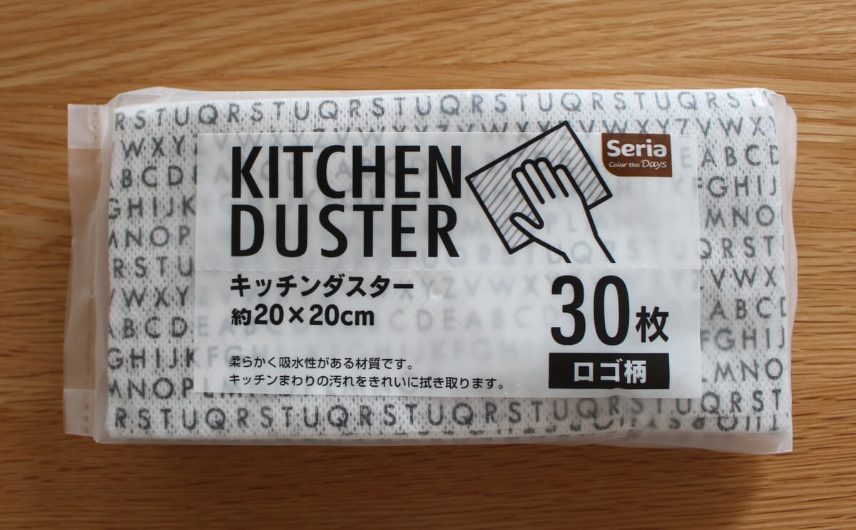 - セリア キッチンダスター 30枚 ロゴ柄 100円(税別)