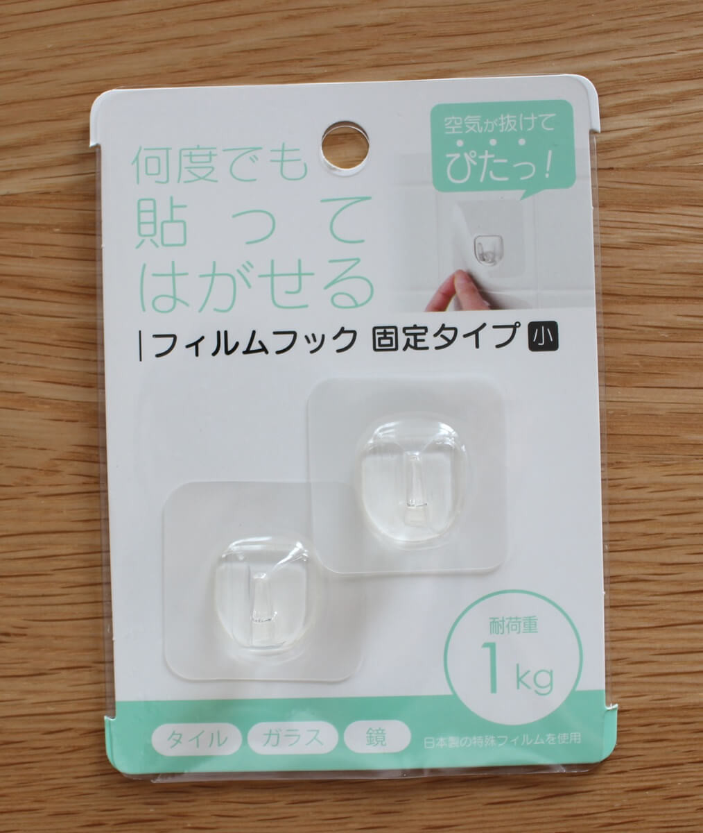 - セリア 何度でも貼ってはがせる フィルムフック 固定タイプ(小) 100円(税別)