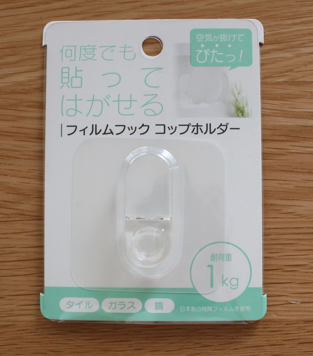 - セリア 何度でも貼ってはがせる フィルムフック コップフォルダー 100円(税別)