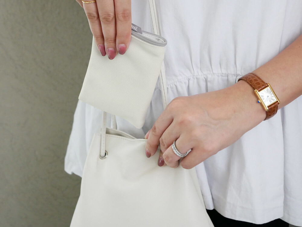 小ぶりなバッグやアウターのポケットにもそのまま入れられる大きさ。 オシャレな外見は、カバンからの出し入れも気になりませんね。