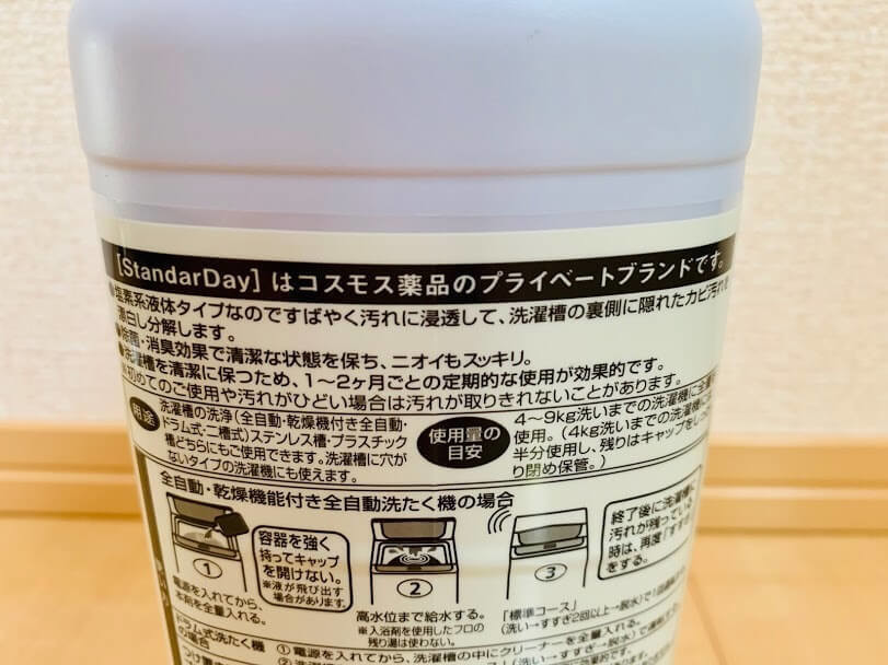 満を持してドラッグコスモスへ!『StandarDay』の洗濯槽クリーナーがあるとは知らずに入店。洗濯関連の売り場へ到着!色んな商品に目が行きます。洗濯槽クリーナーのコーナーを見ると、赤だったり青だったり、派手な色とロゴの他メーカー品に並んでひときわシンプルな商品が。