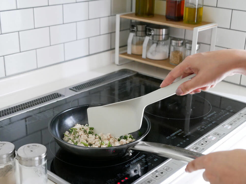 固まったひき肉をほぐしたり、細かい炒め物もお任せ。そのままお皿に移す作業も出来るのでとってもスムーズです。