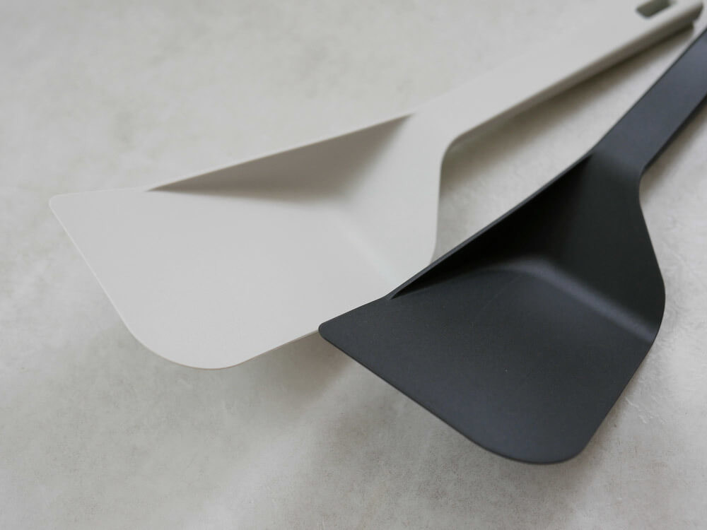 「混ぜる」「ほぐす」「返す」「すくう」「盛り付ける」といったいくつもの調理工程に対応。ヘラやフライ返し、レードルやサービングスプーンの役割がこれひとつでOK!