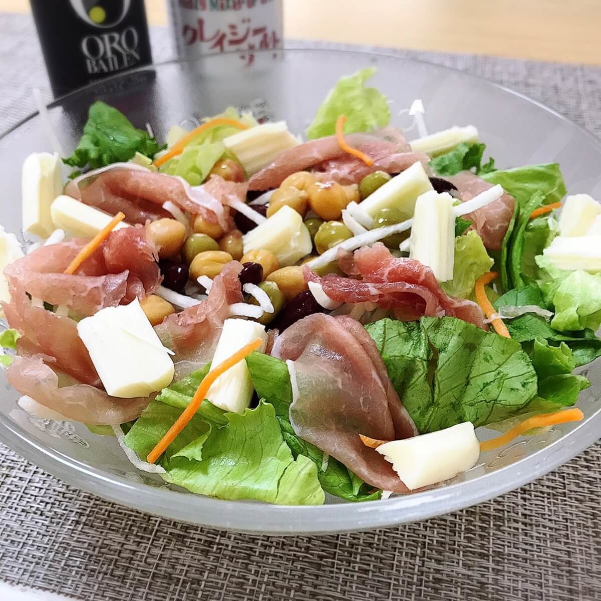 生ハムは、ウインナーやサラミよりも低脂質なのでダイエット中にはおすすめです。ただし塩分が多く含まれており、とりすぎるとむくみの原因にもなりますので、そのぶんドレッシングは控えめにすることで調整しましょう。