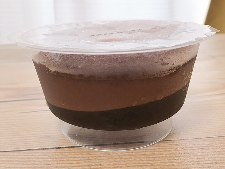 カップの横から覗いてみると、下からチョコレートソース・チョコクリーム・ココアパウダーの3層になっています。