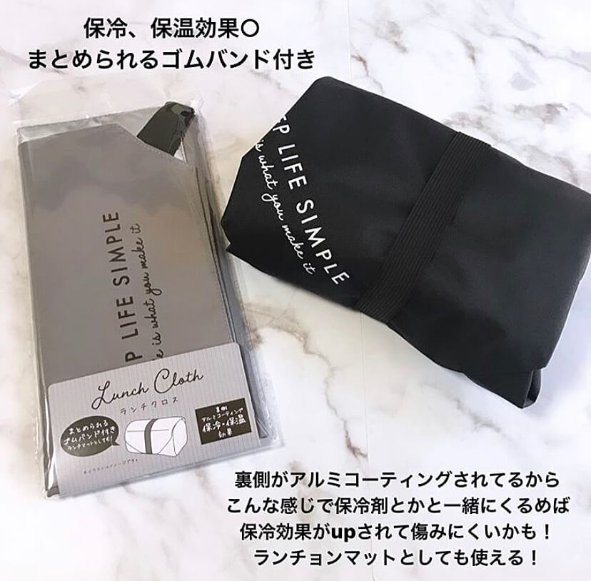 こちらは、内側がアルミコーティングされている「ランチクロス」。保冷・保温効果があるので、傷みが気になる時期には保冷剤を入れて包めば、お弁当を衛生的に持ち運べそうですね。