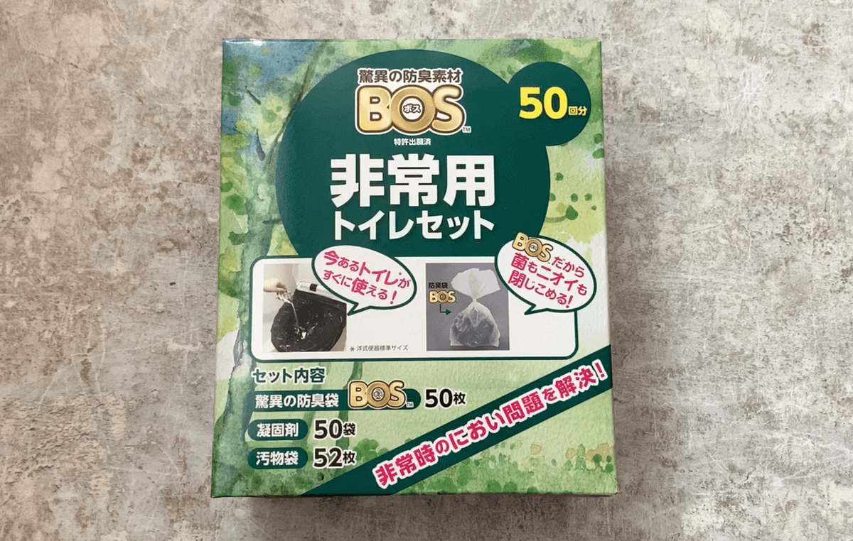 数ある非常用トイレの中から、「BOS非常用簡易トイレセット」を選んだのは、驚異の防臭袋BOS(ボス)がセットになっているからです。