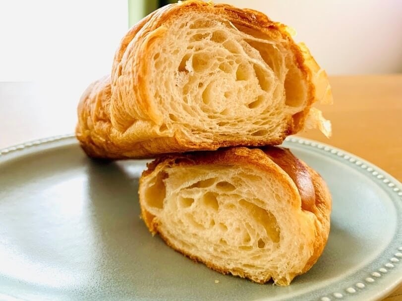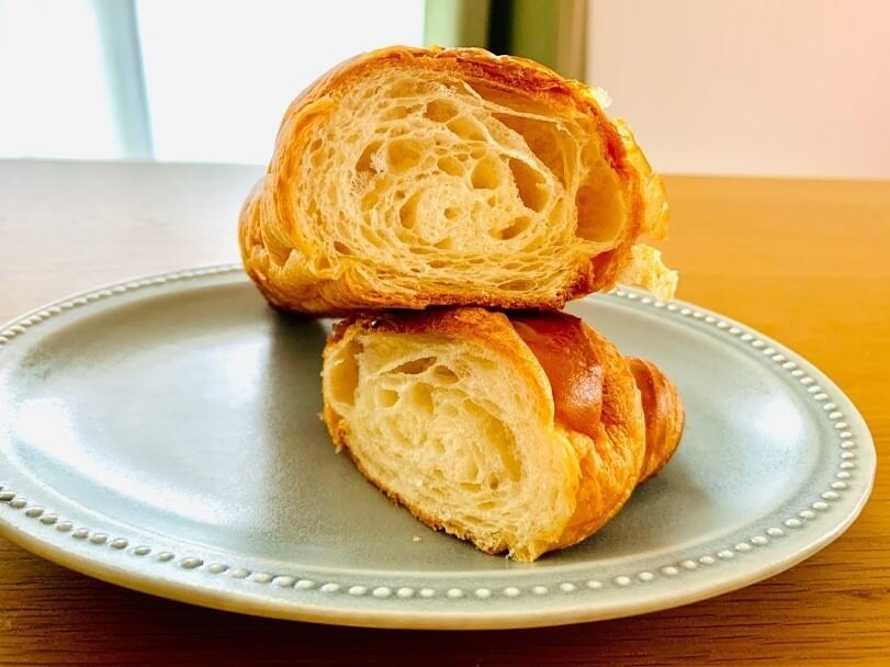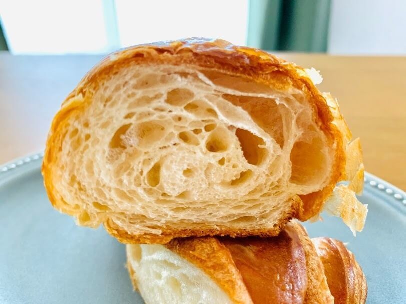 先ほどもお伝えしましたが、クロワッサンというよりバターロールのような見た目です。皮のパリパリ感は弱めです。