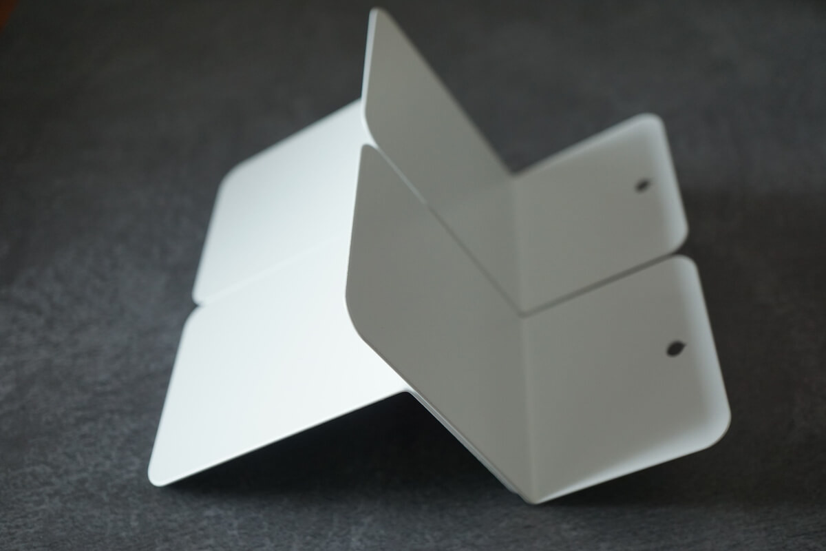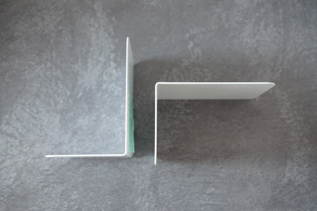 ➁ブックスタンド同士が接触する面を両面テープでくっつけます。