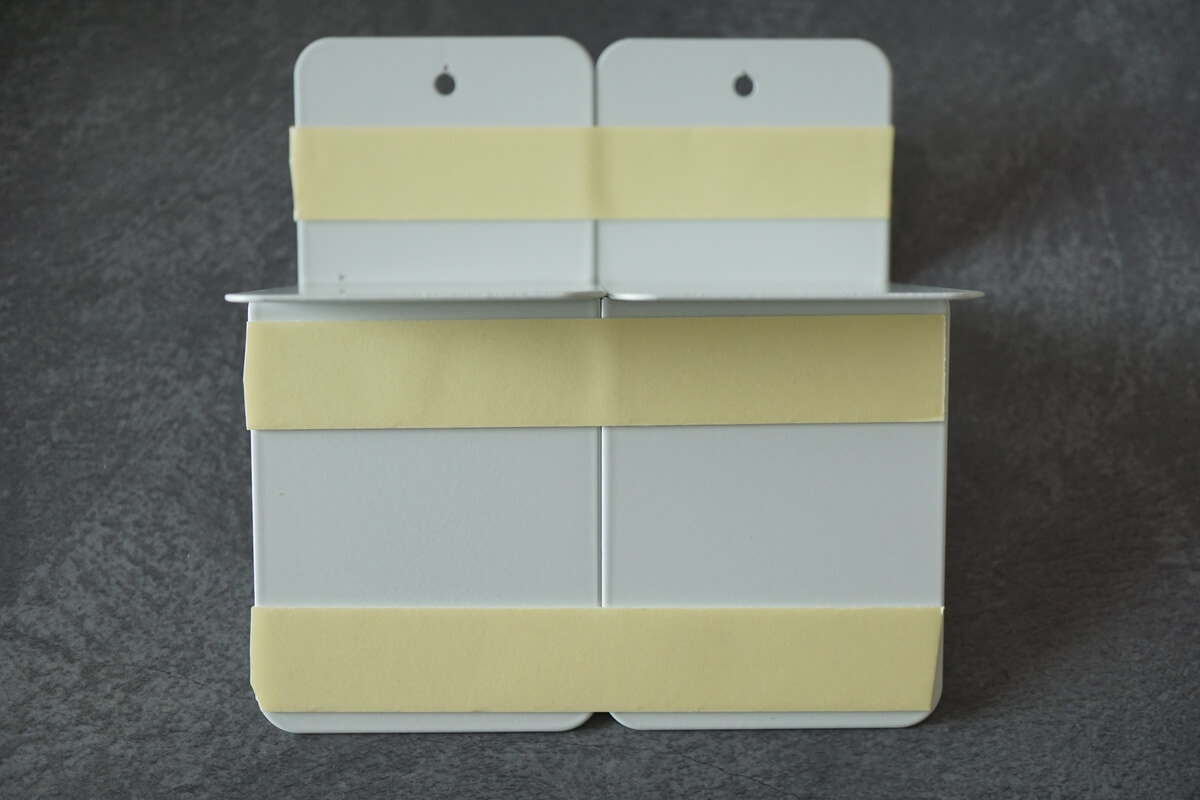 ④2つ並べたブックスタンドミニの3か所に両面テープを貼ります。