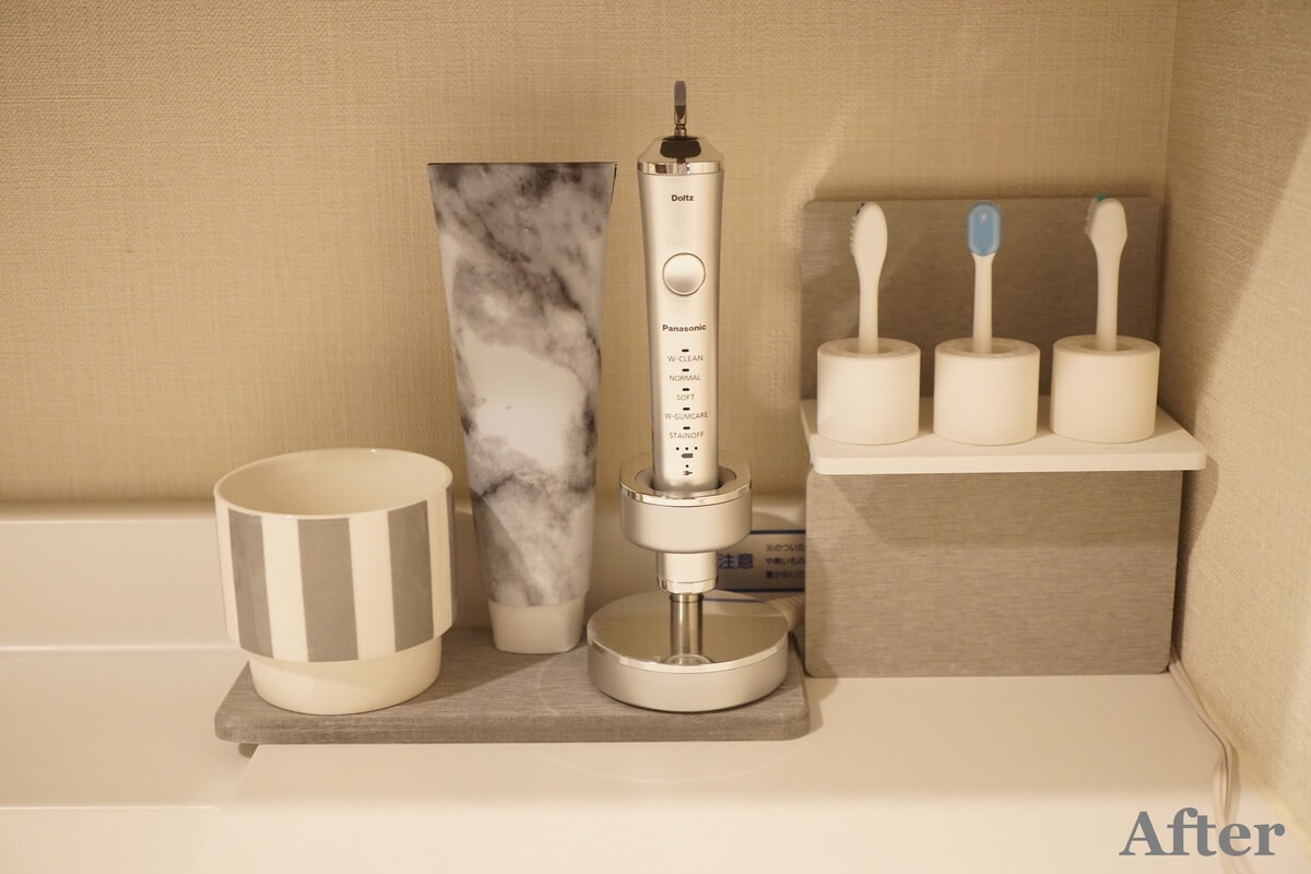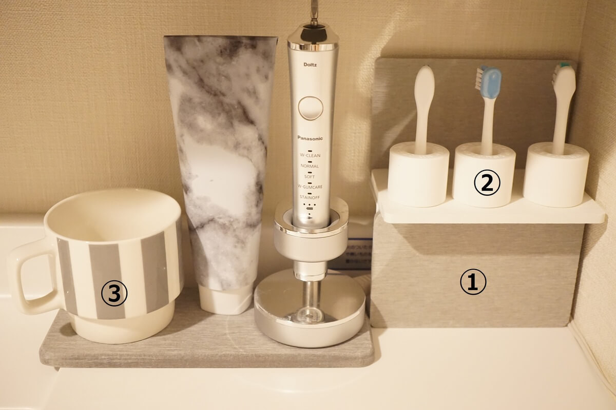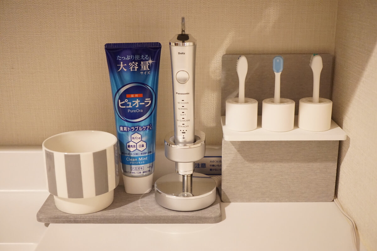 こちらで歯ブラシセット置き場はほぼ完成です。