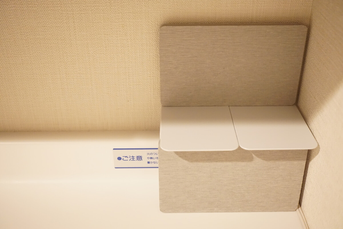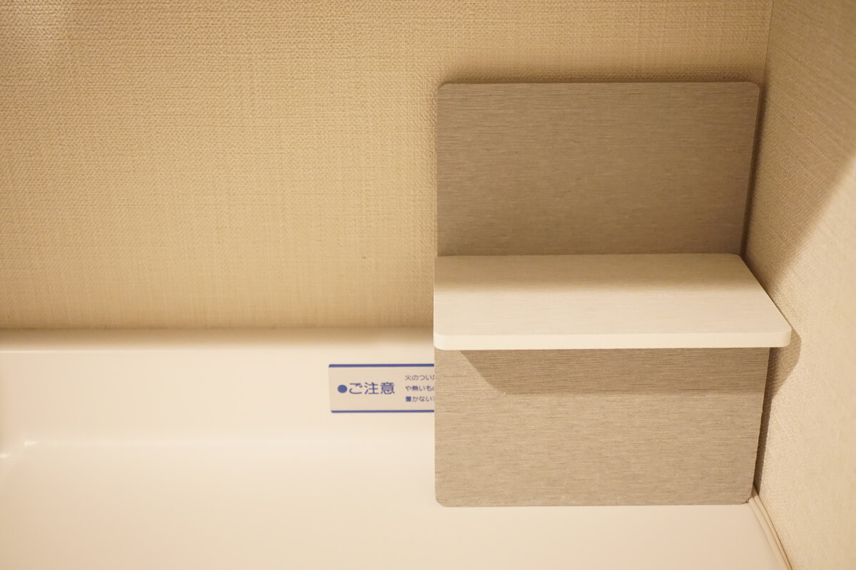 ⑦平面に珪藻土ソープトレイ(ホワイト)を置きます。