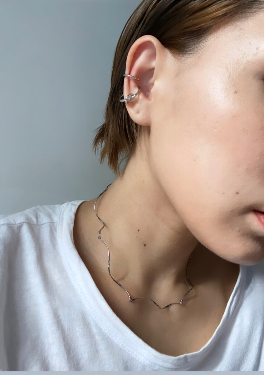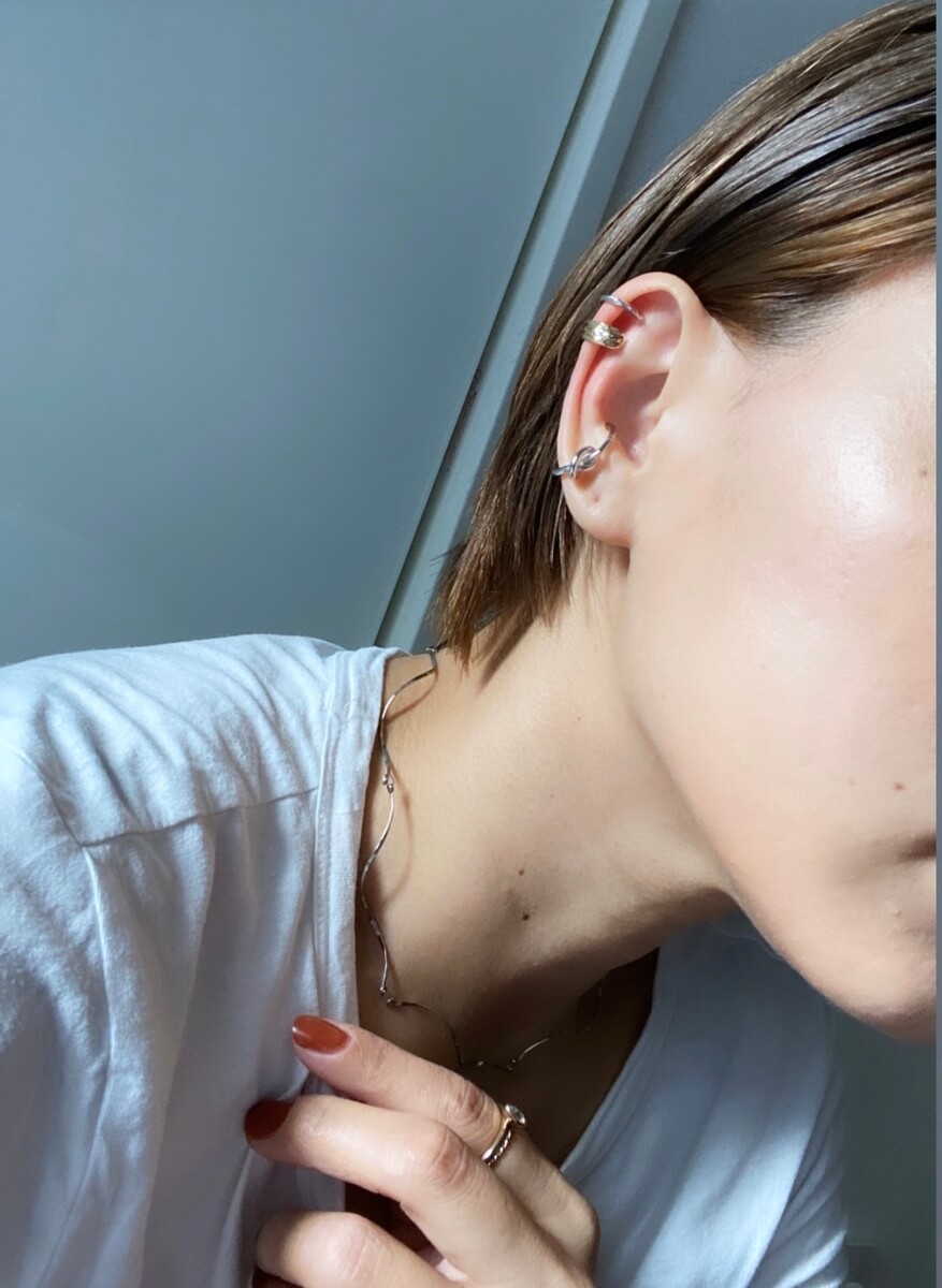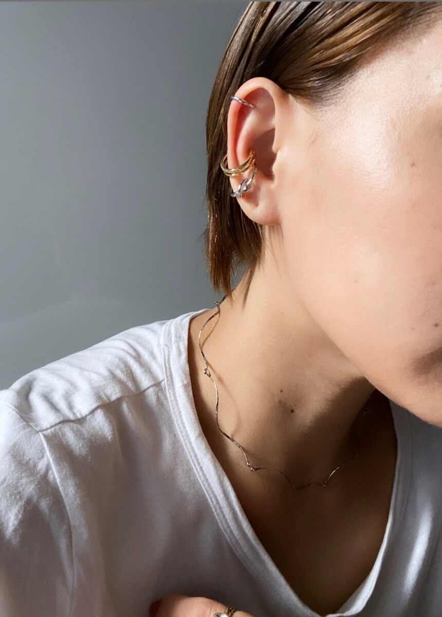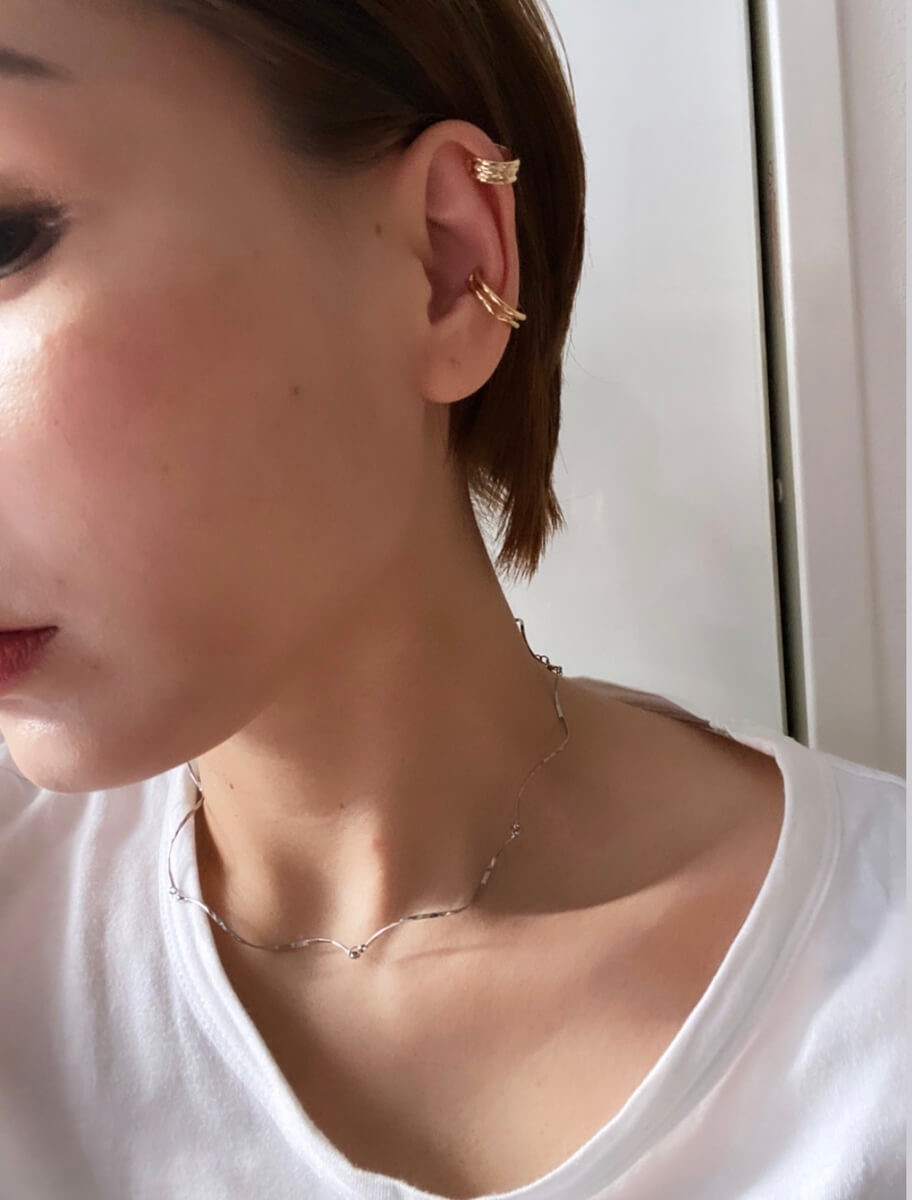 イヤーカフとは、耳の中心に引っ掛けるタイプのアクセサリー。 耳たぶから上のエリアに引っ掛けるだけなので、痛みも感じにくく落ちにくいのが魅力です。