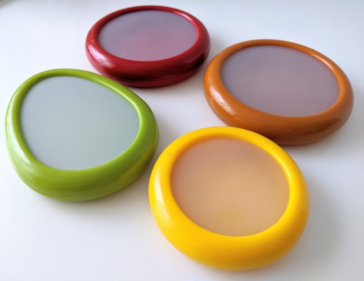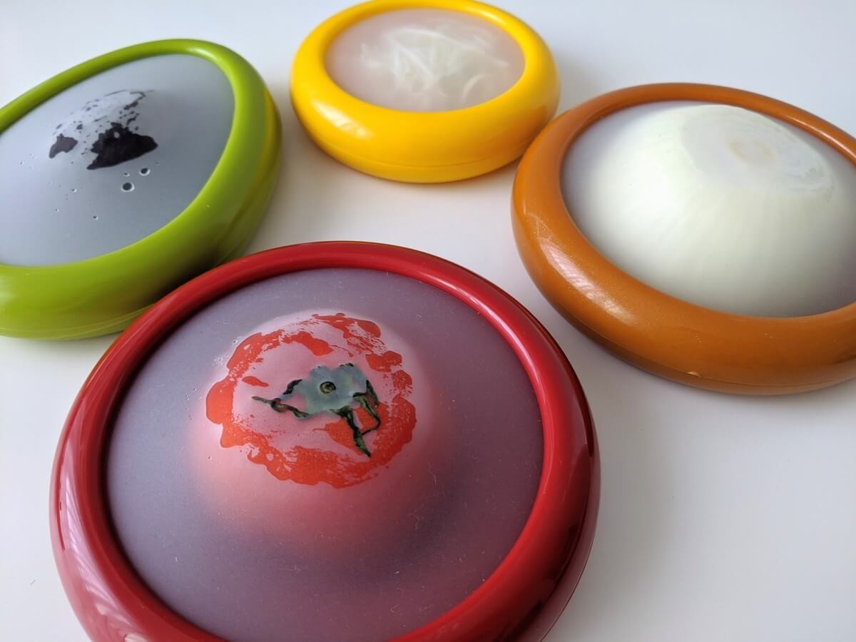 カラフルな色使いが可愛いフェリシモのカプセルポッド。 オニオン、トマト、レモン、アボカドの4種類あり、どれも厚さは約2.5cmとコンパクトです。