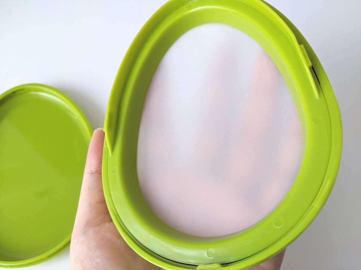 アボカドのカプセルポッドに、アボカドを入れてみたいと思います。 使い方は余った食材を入れて、シリコン付きのフタを閉めるだけ。 ラップでいちいち包むよりもラクチンです!