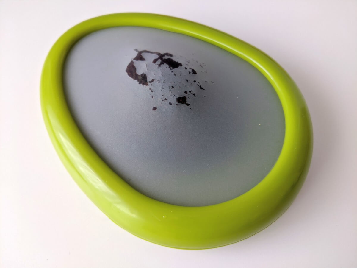こんな風にシリコンが伸びてくれるので、多めに食材が残ってしまっても大丈夫です。 ちなみにアボカドのカプセルポッドのサイズは、縦約14cm、横約10.5cmです。
