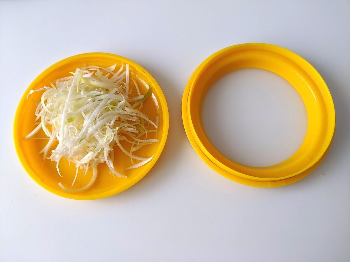 レモンのカプセルポッドには、千切りにしたねぎを入れてみました。 直径約10cmと小ぶりなので、 薬味皿のように使うのも良いかもしれません。