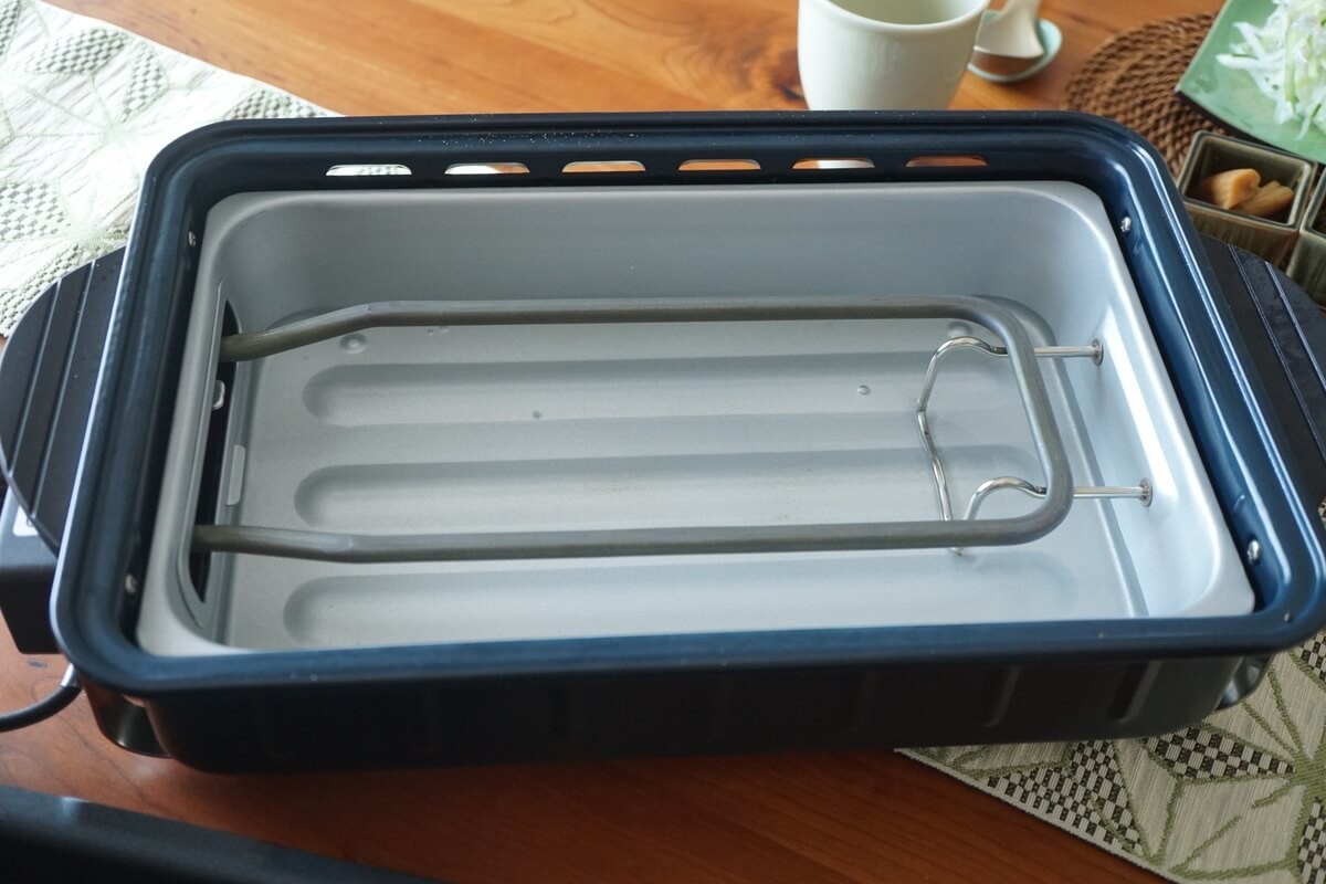 レコルト ホームバーベキューを使用する際は必ず水トレイに水を入れます。