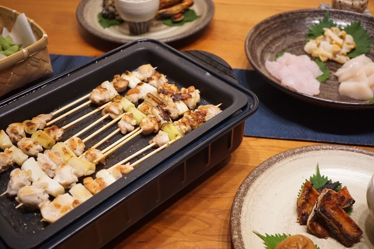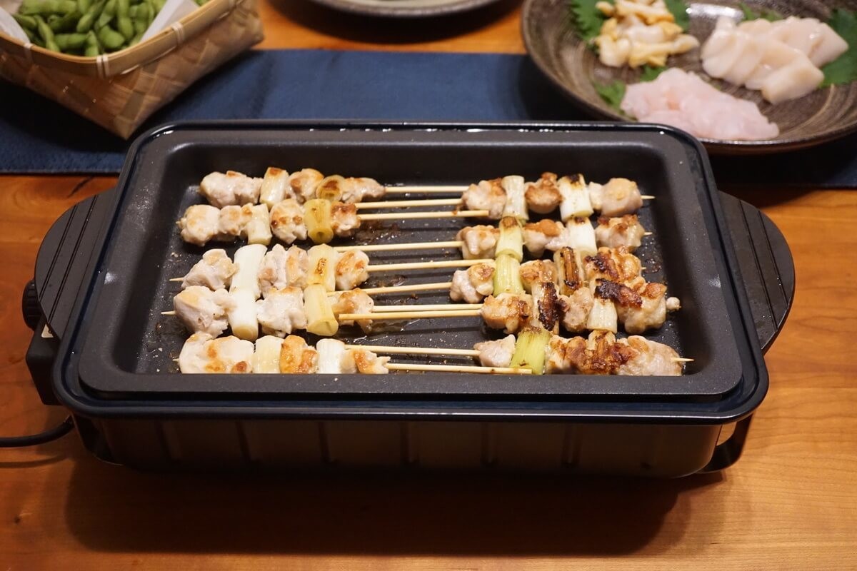 焼き鳥の場合は煙が出るので換気扇の下で焼き、焼き鳥が焼けたらテーブルに運び、保温状態にするのがおすすめです。