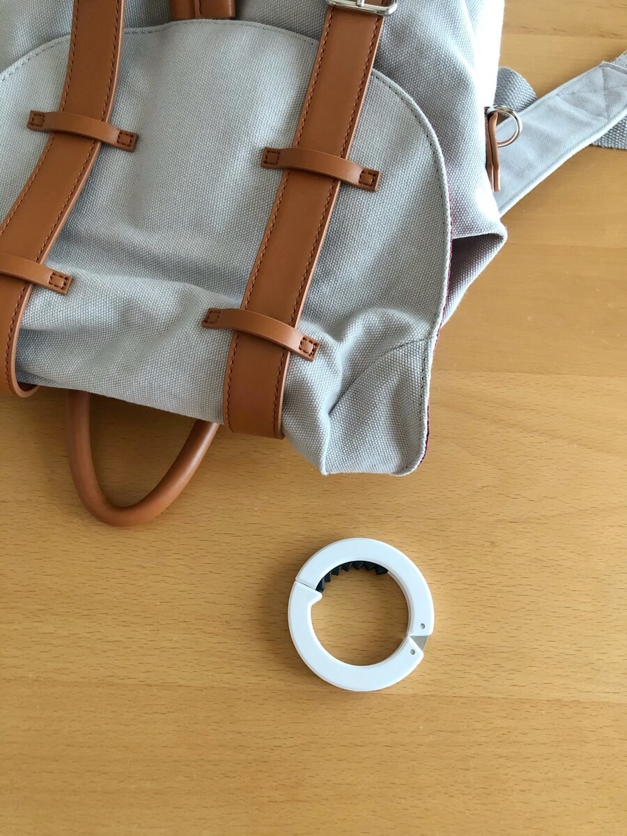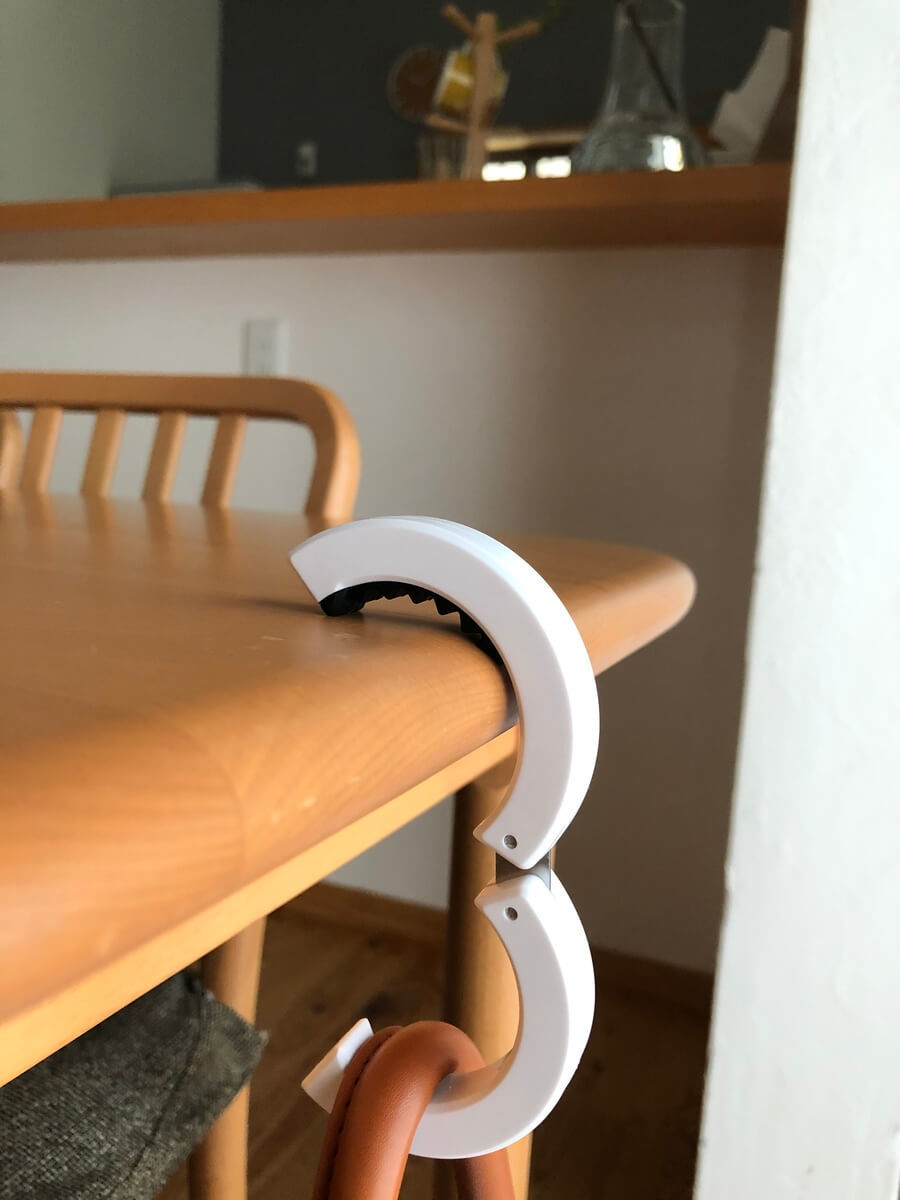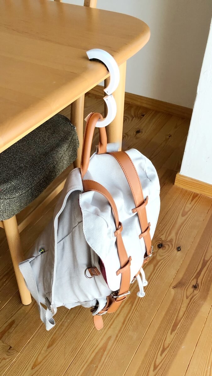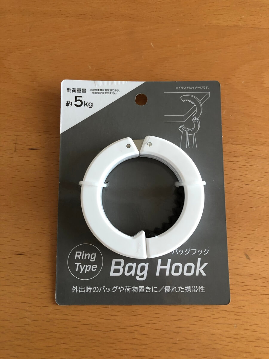 セリアのバッグフックです。こちらなんと耐荷重5キロ! 普段使いのバッグ程度であれば余裕で引っ掛けられちゃいます。
