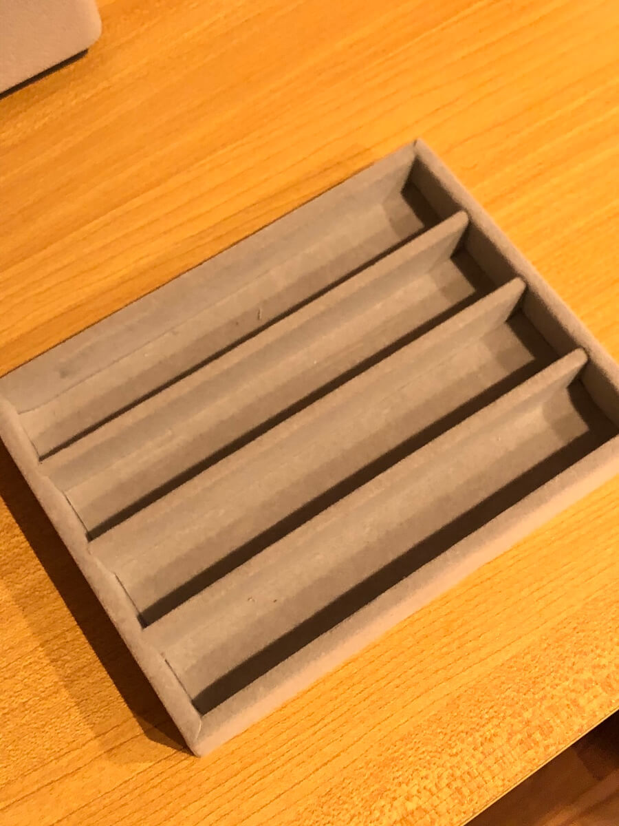 こちら無印良品「アクリルケース用・ベロア内箱仕切・格子」シリーズによく似ています。