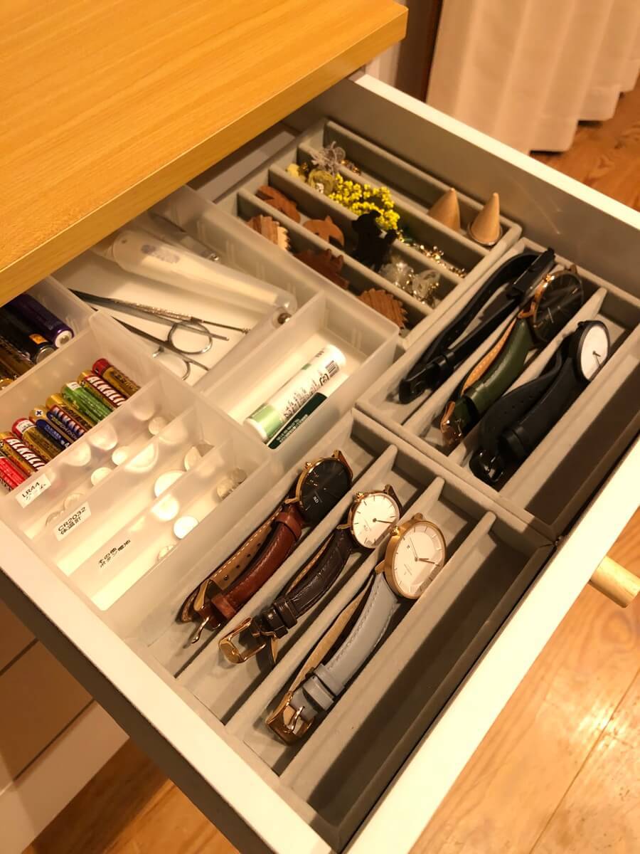 サイズ展開は無印良品が少し大きめのものもあったりと、豊富ですが、ダイソーのものも仕切りのバリエーションは様々で、「マス」「リング収納」「ネックレス収納」などいろんな形があり、カラー展開もグレー・ピンク・ブラックの3種類で販売されています。