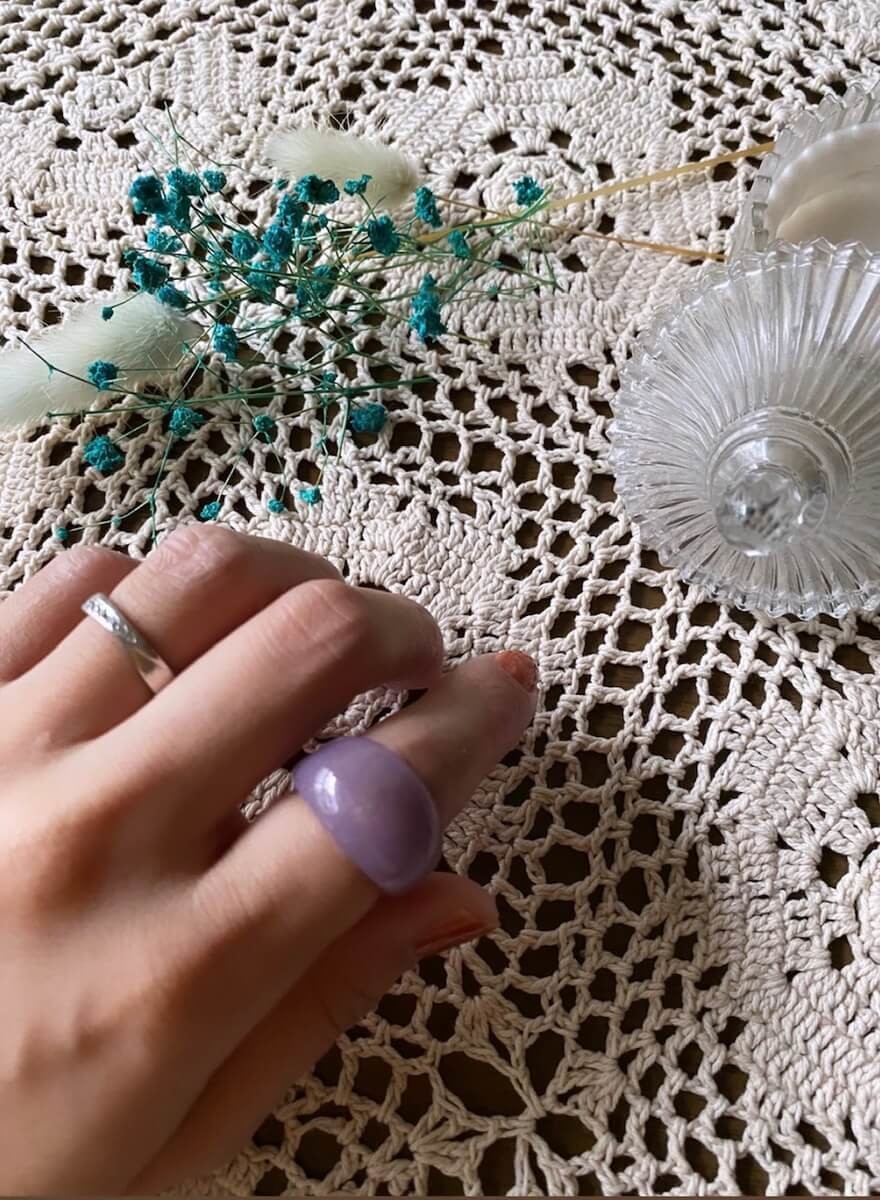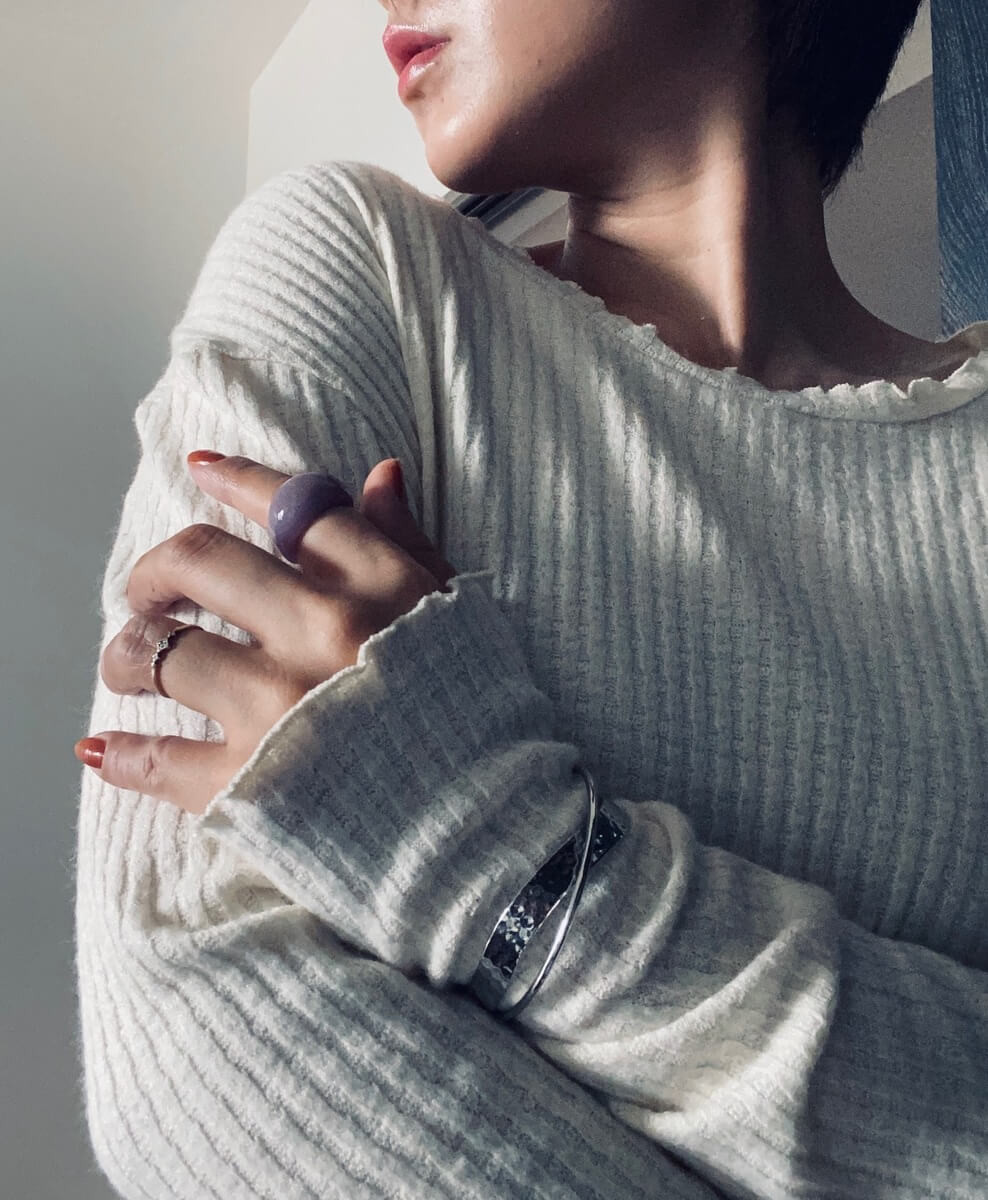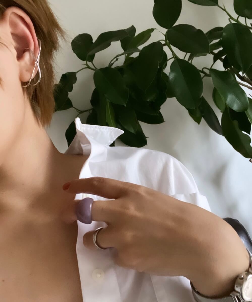 太めな指にはめるとリングの方に目線がいくので、指が細く見えるのも嬉しいポイント。