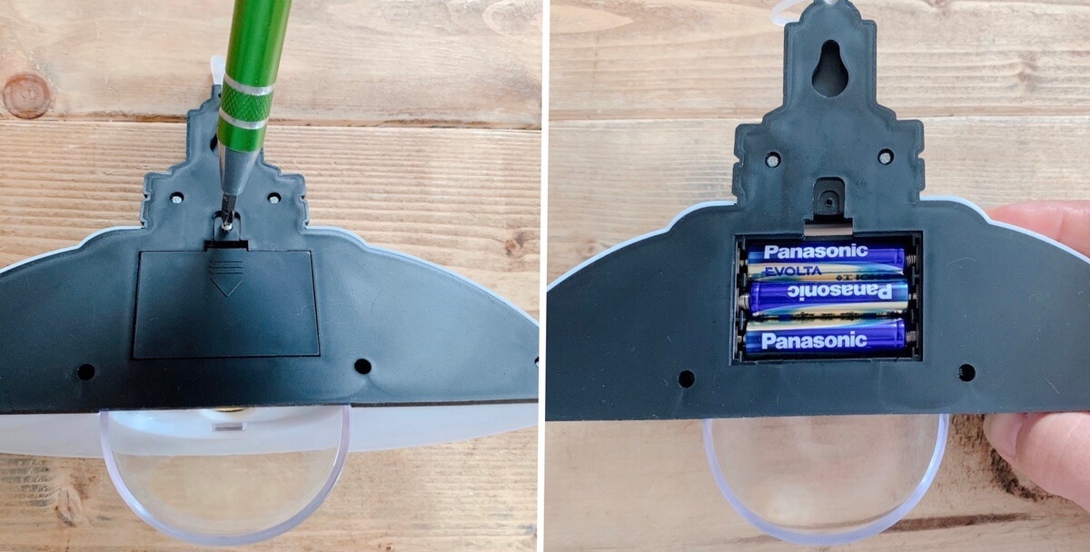 精密ドライバーでカバーを開けたら電池をセットしてください。