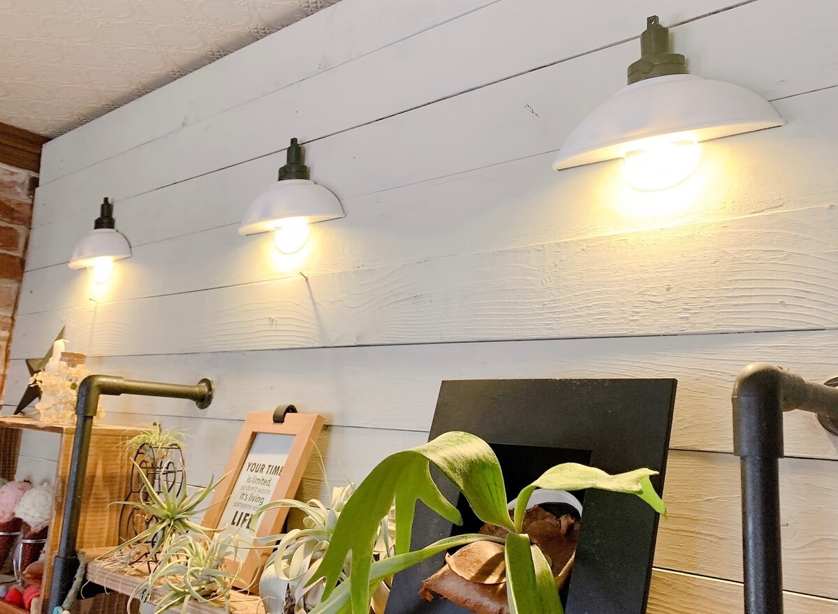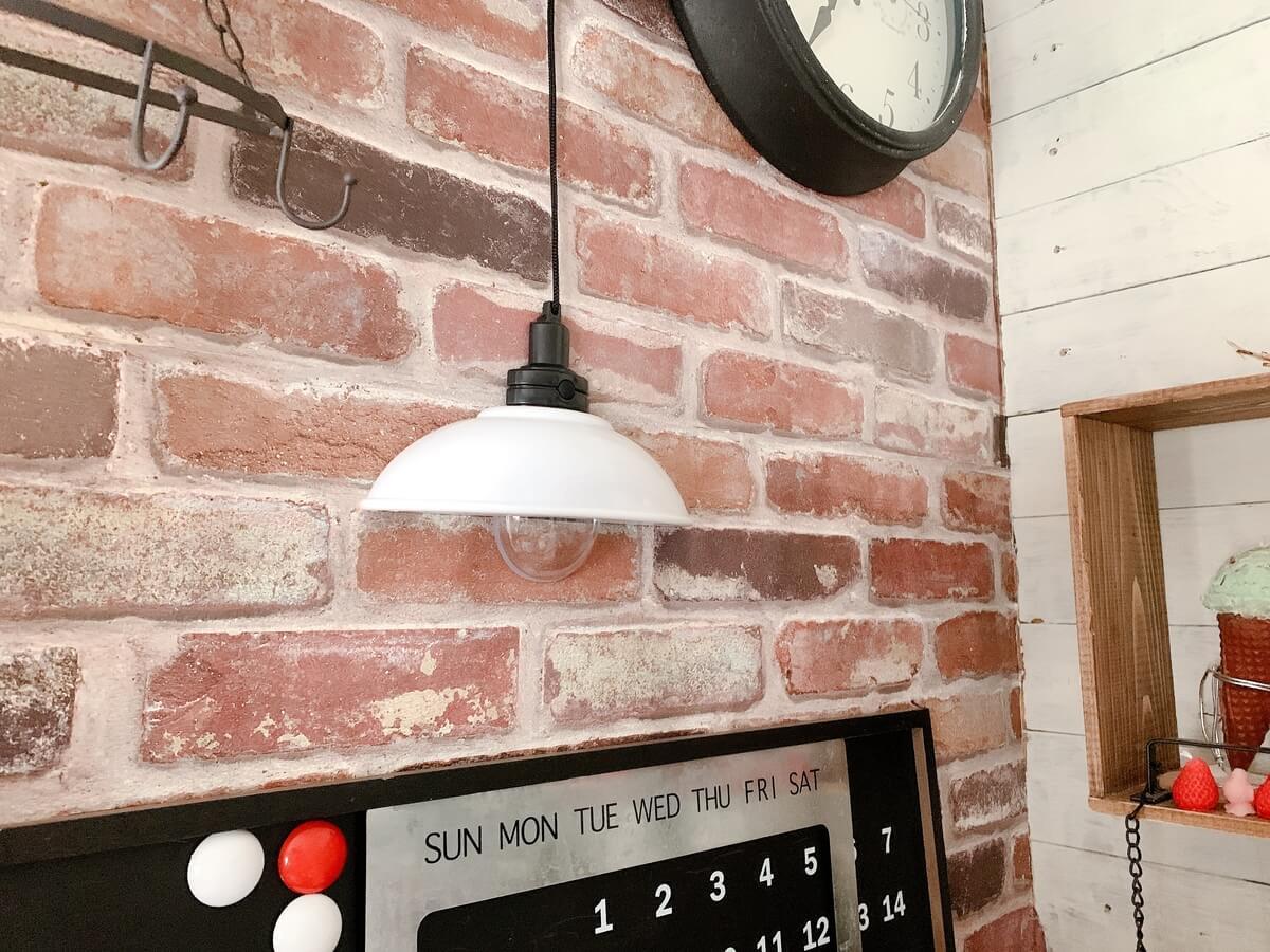 こちらはダイソーで300円で発売されていたインテリアウォールライトです。通常、上から見ると傘付きライトや吊り紐のライトは円形ですが、こちらのライトは背面が真っ平な半円形。