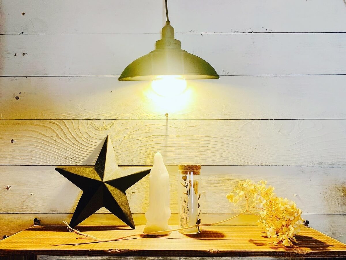 傘部分が白いままでも素敵ですが、気軽に自分のお部屋にあった色にペイントして簡単なDIYを楽しめちゃうのもダイソーのコスパのおかげかも。