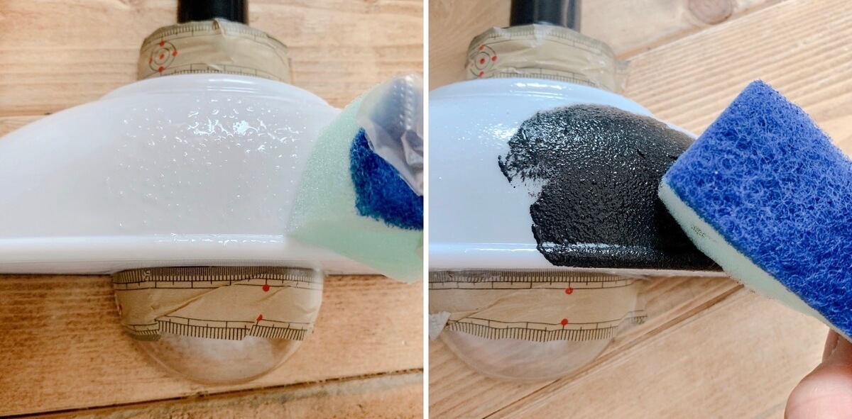 下地を塗って乾いたらアイアンブラックをスポンジでポンポンと塗っていくと質感がアイアンのようになり少し重量感が出ます。