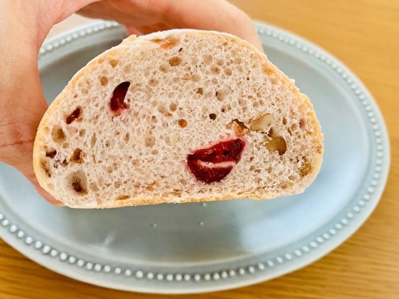 ドライクランベリー使用とのことですが、想像以上にクランベリーがジューシー!他の具材より大きめにカットされているのもあるかもしれませんが、酸味と甘みがちょうどいいです。
