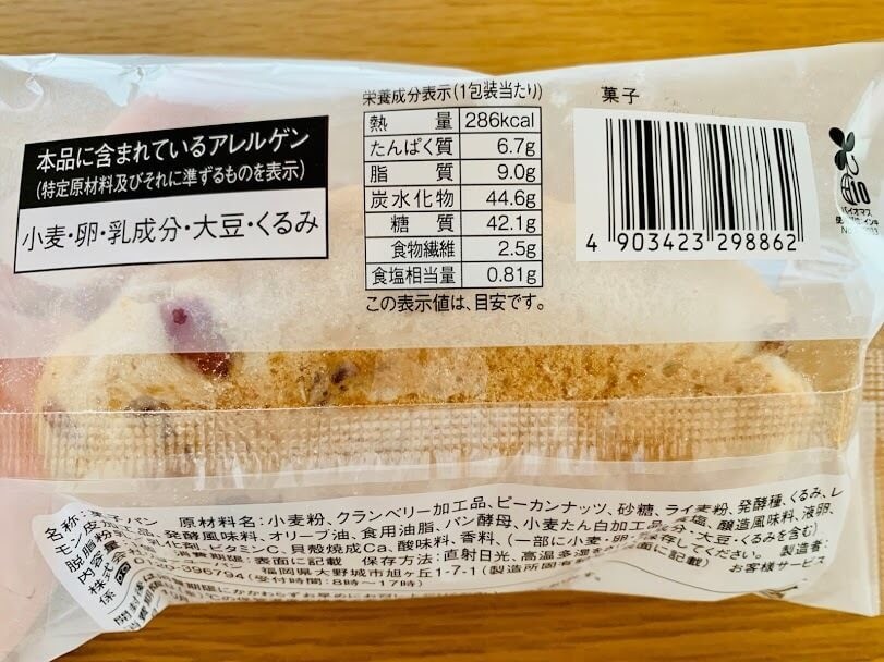マチノパン クランベリーとピーカンナッツ、カロリーは?