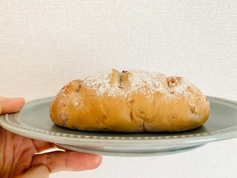 きゃ~可愛い~♪ふっくらと丸いフォルム。写真では分かりづらいですが、表面にくるみやピーカンナッツ、ピールなどが見えています。