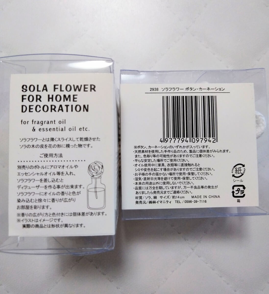 使用方法は、別売りのボトルにアロマオイルやエッセンシャルオイル等を入れ、ソラフラワーを差し込むと、ディフューザーを作ることができます。