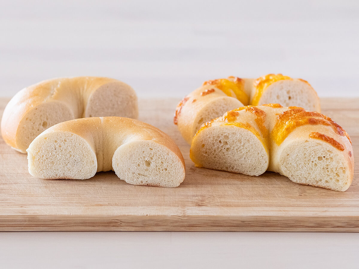 ベーグル2種を半分にカットしてみました。