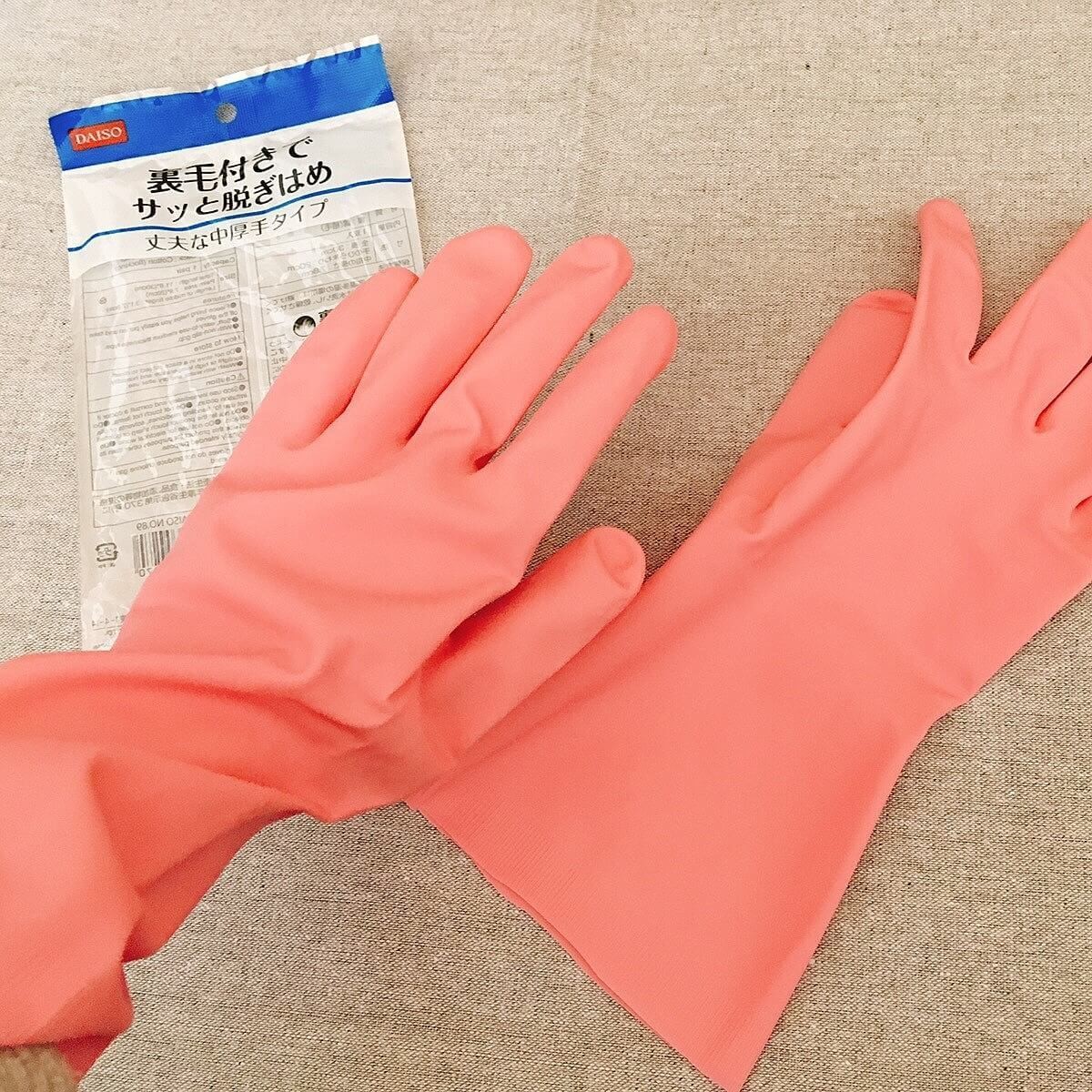 品質は商品によって少し違いがあるものの、「裏毛付き」のゴム手袋は耐久性もあり、滑り止めもついているので、とても使いやすいです。