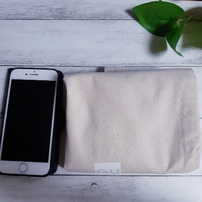 GUのエコバッグは、布でできているから小さくたたむことができます。