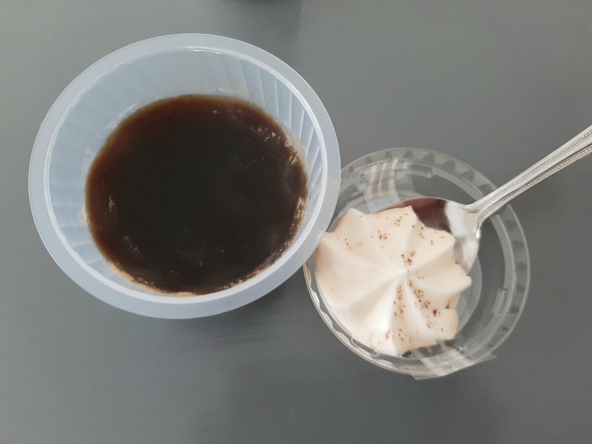 珈琲ゼリーにのっているホイップクリームを大きめのスプーンなどで形が崩れないように気をつけながらいったん移動します。