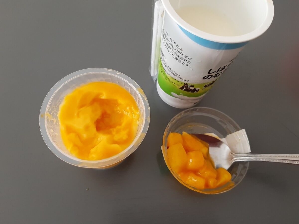 マンゴープリンはやわらかいので軽めに崩すだけでOKです。