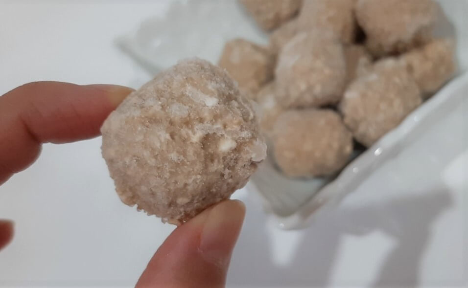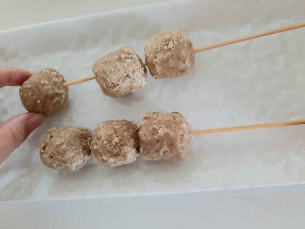 ゴロゴロとひとつひとつの存在感が大きい鶏だんご。火を通せばふわふわ食感、スープに入れればいい出汁がでるので我が家では欠かせないストック食材です。