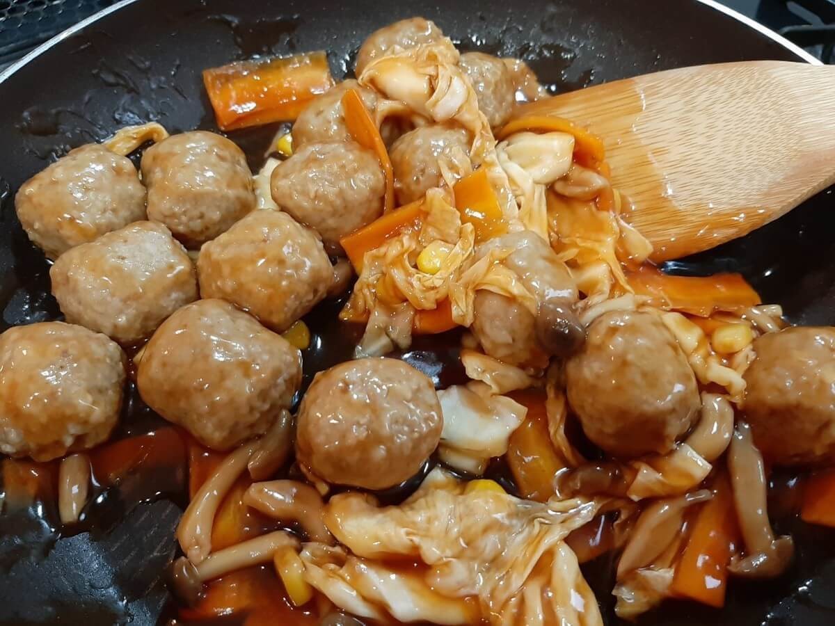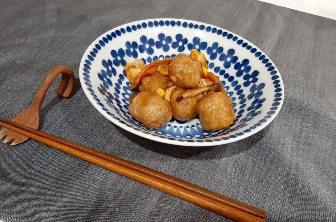甘酢が絡んだ鶏だんごはふわふわで病みつきになります。 残り物の野菜を何でもいれられるのもいいですよね。