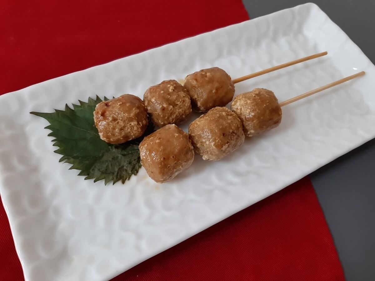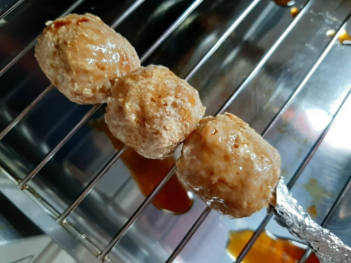 タレを鶏だんごの表面に塗ったら表面が少し焦げ色になるまで焼いたらできあがり!