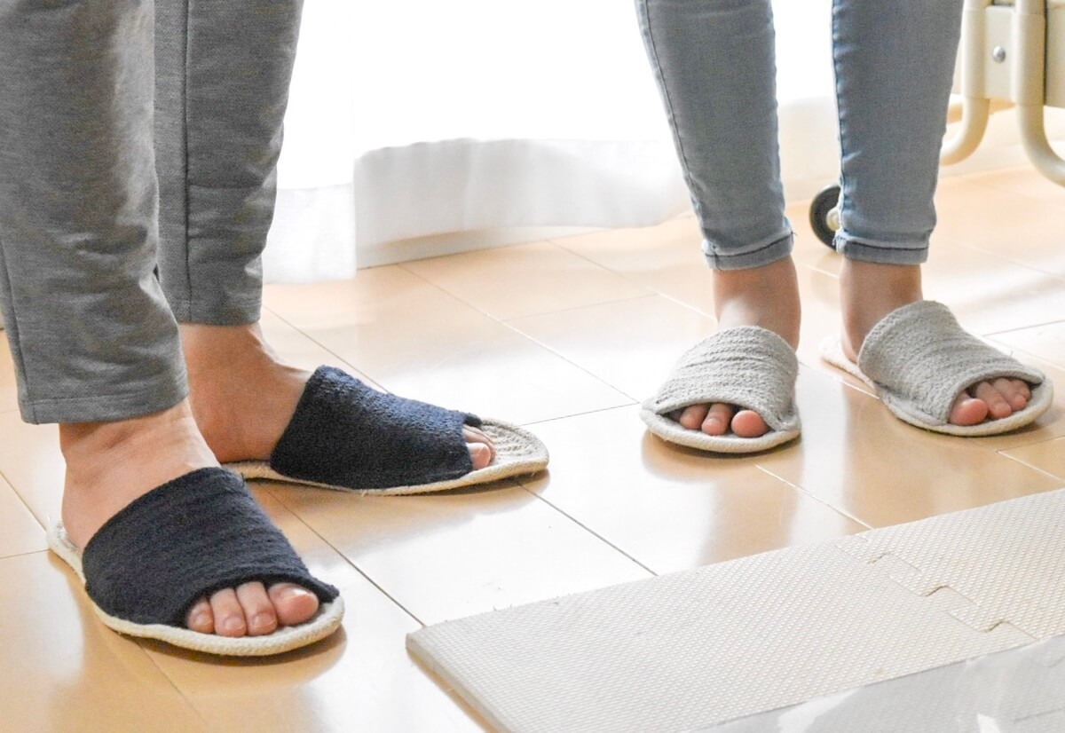 また、通常のスリッパに比べると甲周りが小さめなので、甲高・幅広の方も前開きタイプを購入する際は甲周りのフィット感を確認し、きつい時は1サイズアップ(もしくは鼻緒タイプ)がおすすめです。