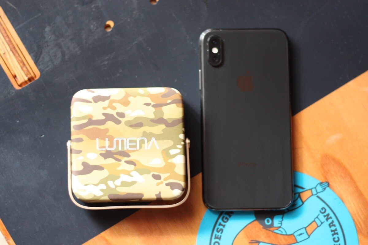 ルーメナー7の大きさは、縦・横9.2cmほど。iPhone XSと比べてもずいぶん小さいですよね。