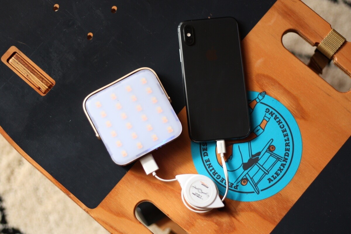 スマホを充電しながらLEDランタンとしても使用できますよ。
