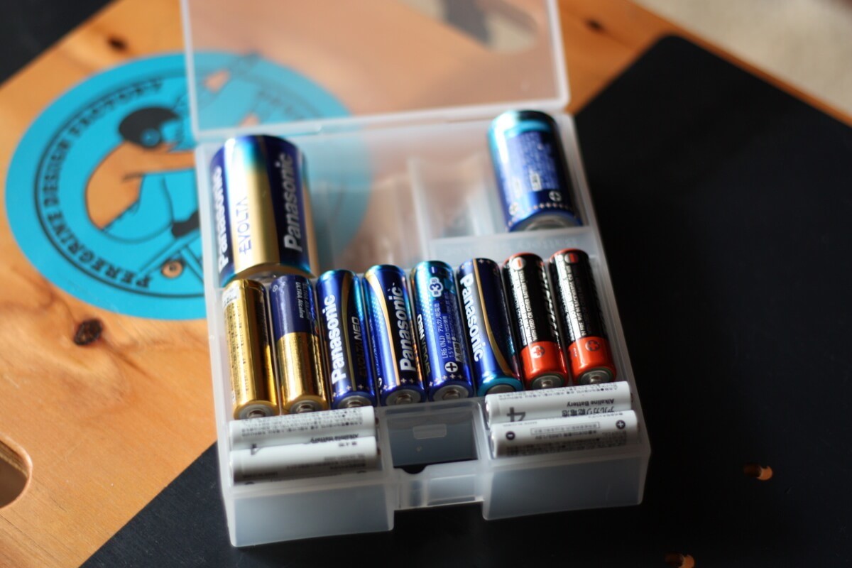 ケースに入れて電池を収納すると、在庫管理がしやすいですよ。