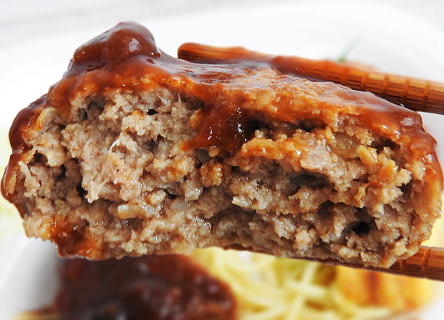 これよりももっと分厚いハンバーグは珍しくないため、さほど衝撃はありませんでした。ただし、お弁当の中に入っているハンバーグと考えると「極厚」ですね。