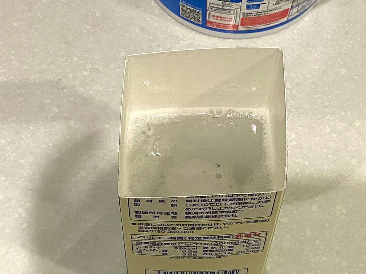 小物類のオキシ漬けに便利なのは、ずばり「牛乳パック」です!