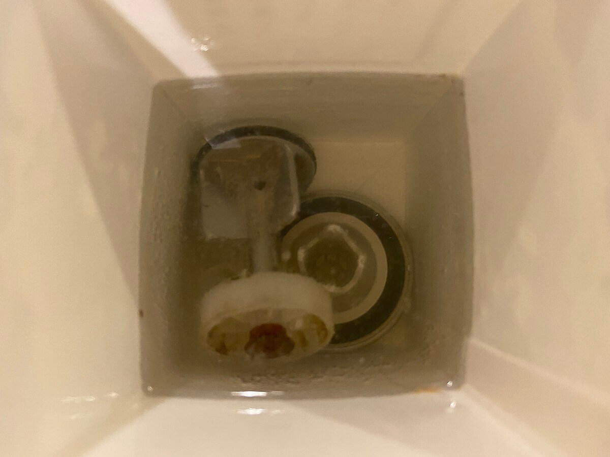 わが家の浴槽と洗面ボウルの排水栓をオキシ漬けにしていきます。放置していたので、かなり汚れていますね……。